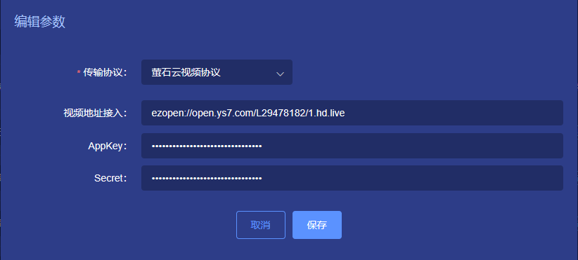 Configure playback address, appKey, and secret.