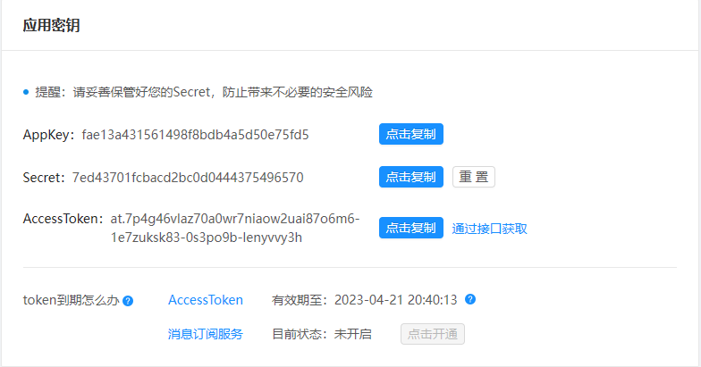 The appKey and secret in the parameters need to be obtained from the application information on the Ezviz Open Platform.
