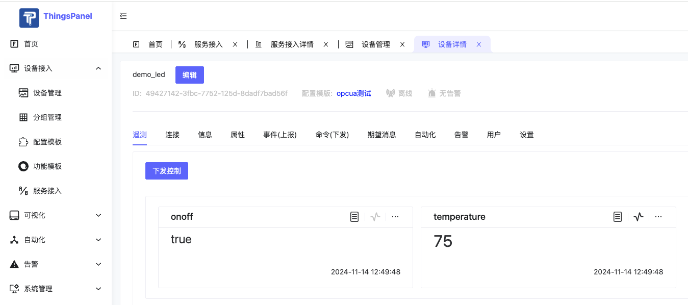 OPC-UA(OPC Unified Architecture)作为工业自动化领域的新一代通信标准协议,正在逐步取代传统的OPC协议。它提供了一个安全、可靠、平台无关的工业通信解决方案。ThingsPanel平台通过集成OPC-UA设备接入服务,实现了与工业设备的无缝对接,为工业物联网应用提供了强大的支持。